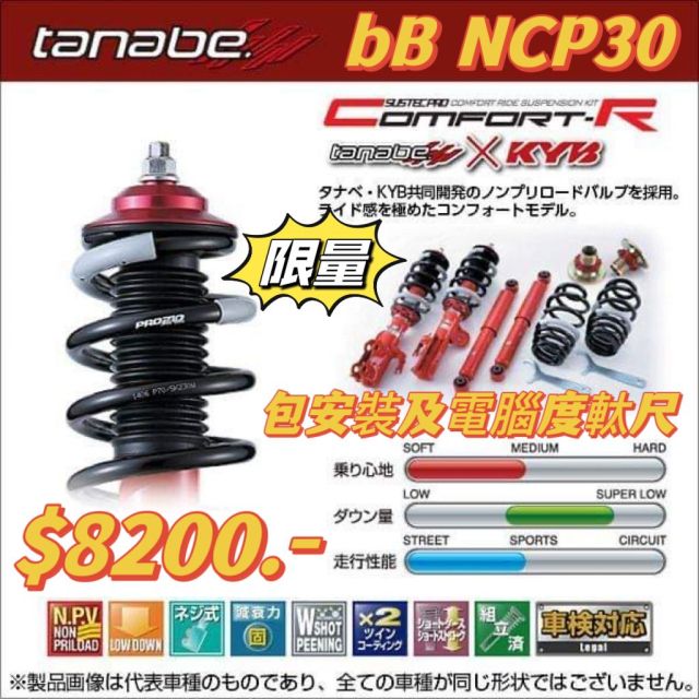 TOYOTA bB NCP30 Tanabe Comfort R 避震套裝 (包安裝及四輪定位)