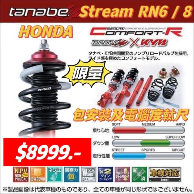 HONDA Stream RN6 / 8 Tanabe Comfort R 避震套裝 (包安裝及四輪定位)