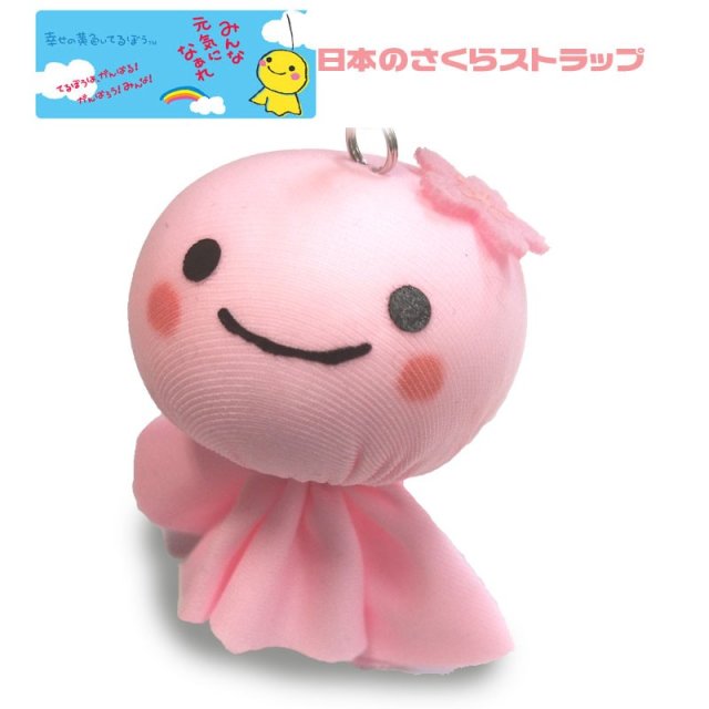 幸せの黄色いてるぼう ストラップ 日本のさくらストラップ ピンク 桜 さくら てるてる坊主 マスコット 梅雨 雨の日
