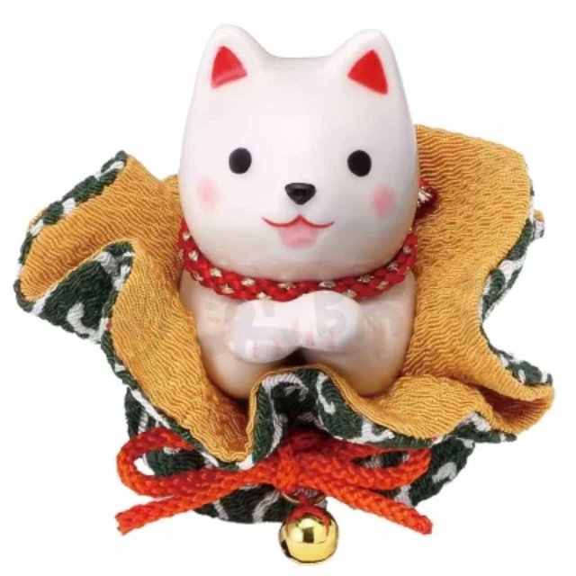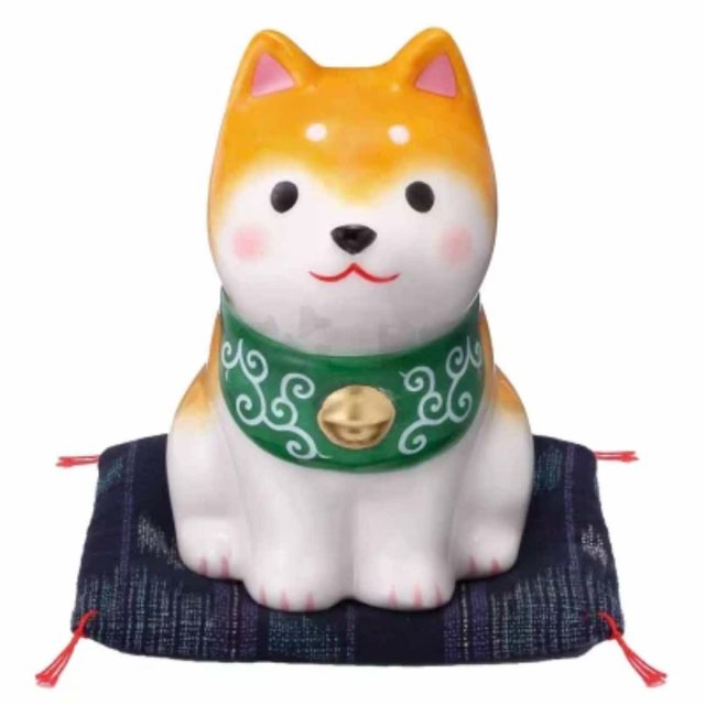 Shiba Inu Figurine Ceramic Dog Goods 柴犬 置物 陶器 犬グッズ/ わんこ日和 柴犬おねだり(ふく福巾着・白柴)