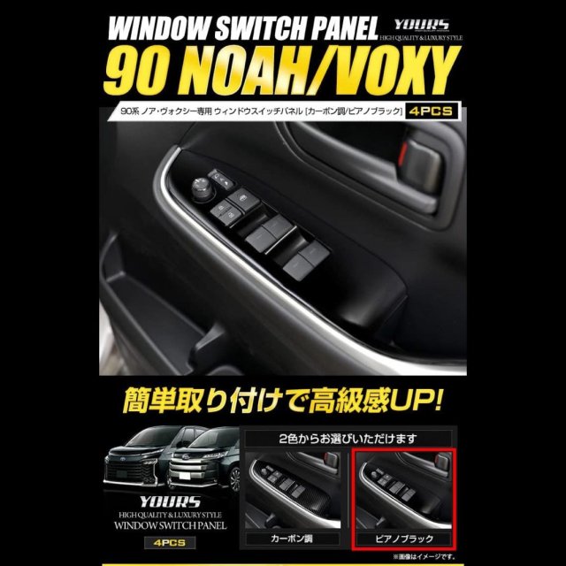 YOURS Voxy & Noah 90 Series Window Switch Panel, 4 Pieces Carbon Tone or Piano Black