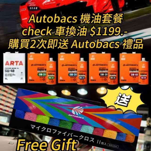 AutoBacs Check 車換油 2 次 (送彩色毛巾)